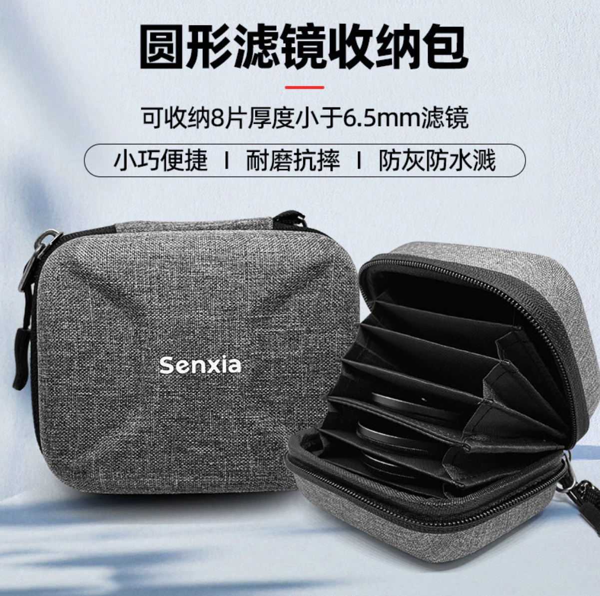 容量: 可收納8片厚度小於6.5mm直徑小於67mm的圓形濾鏡