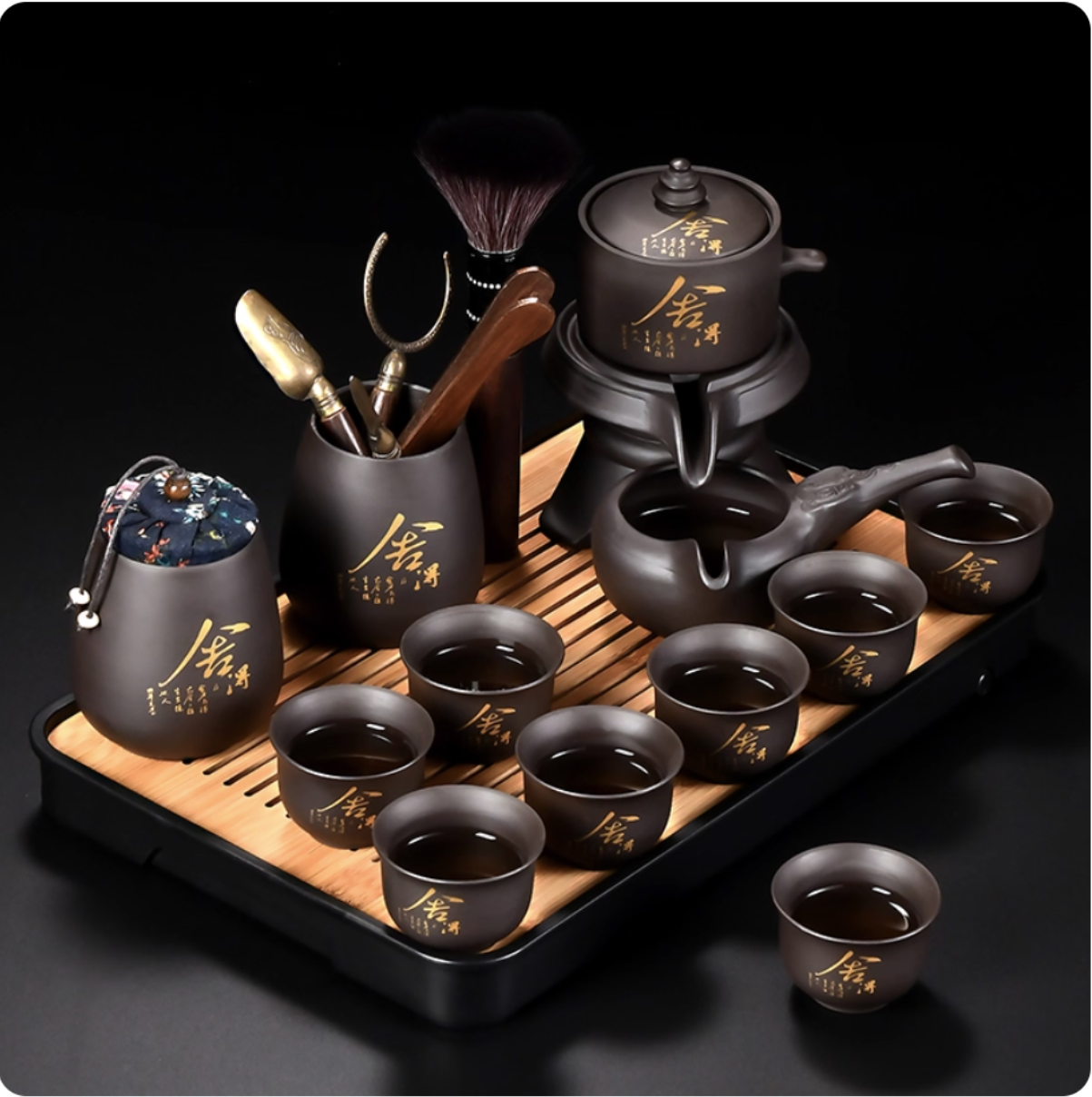 懶人茶具套裝家用紫砂石磨盤半自動高檔簡約茶杯功夫茶壺泡茶神器
