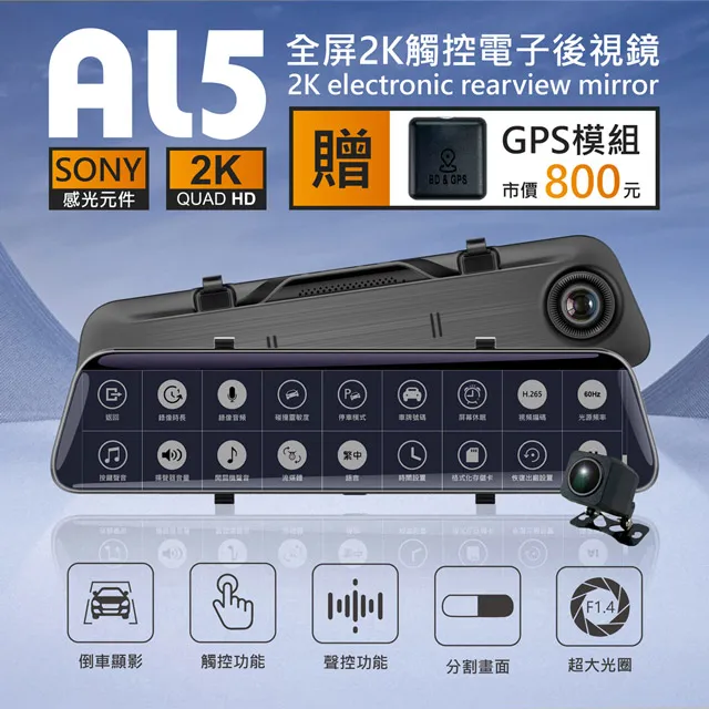 • 12 超視野全螢幕吋全螢幕流媒體 Full screen Large perspective2K全屏2K觸控電子雙錄後視鏡QUAD HDFull screen 2K touch electronic dual recorder rearview mirrorAL5