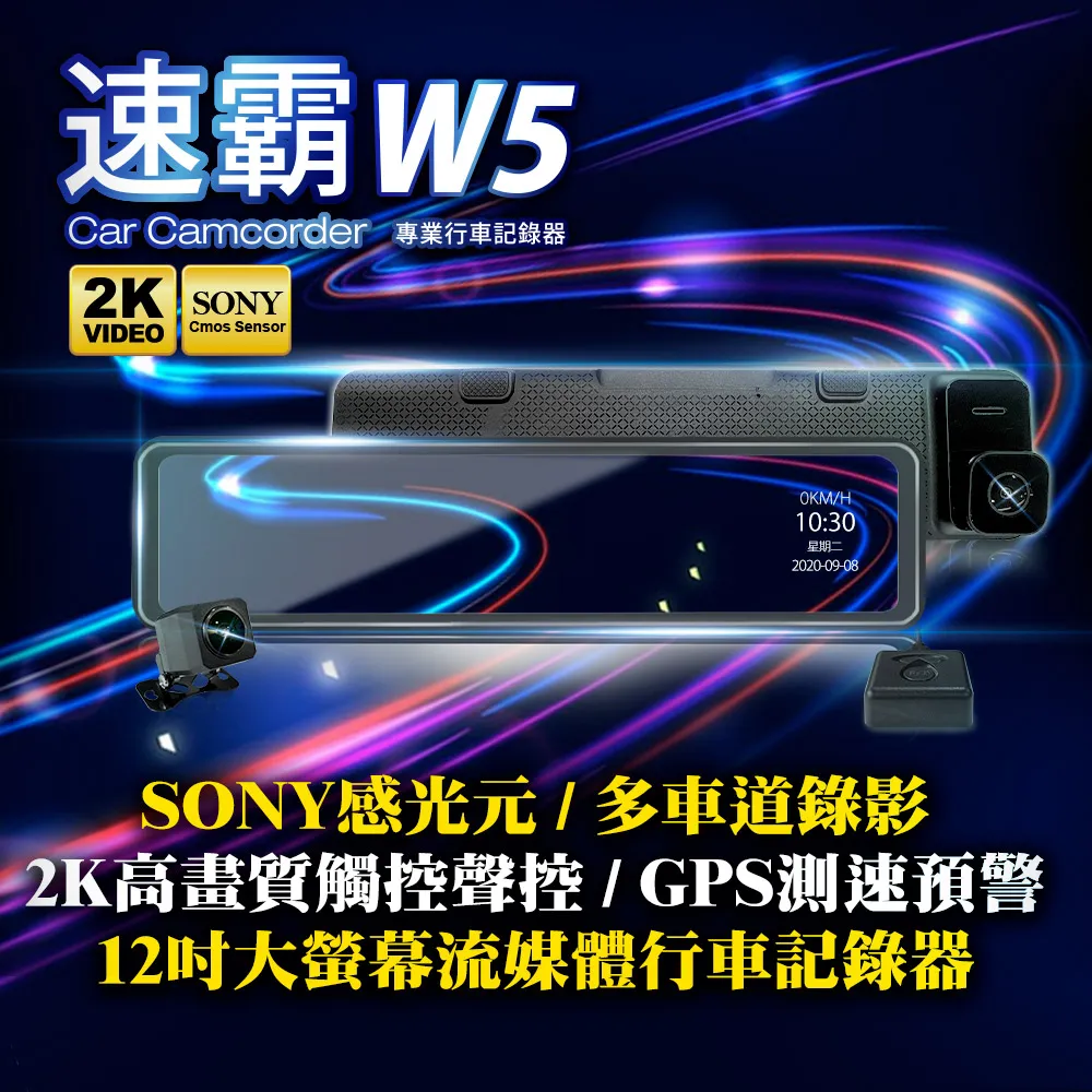 SUPA 速霸W5 12吋大螢幕2K高畫質SONY感光元件流媒體GPS測速預警電子後視鏡